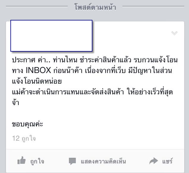 น้องบอกว่า ได้ซื้อของกับร้านนี้เป็นประจำอยู่แล้วว หลังจากที่ได้อ่านโพสของเจ้าของร้านทีหน้าแฟนเพจ...
