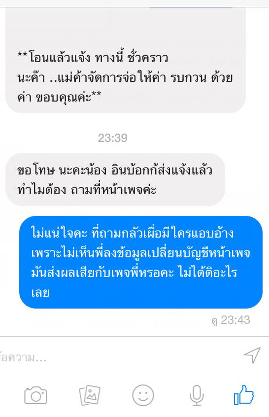 คือมีอินบ้อกมาว่าทางร้านเปลี่ยนเลขบัญชีชั่วคราว และไอ้เรื่องแฮกข้อมูลกันสมัยนี้มันไม่ยากอ่ะ
