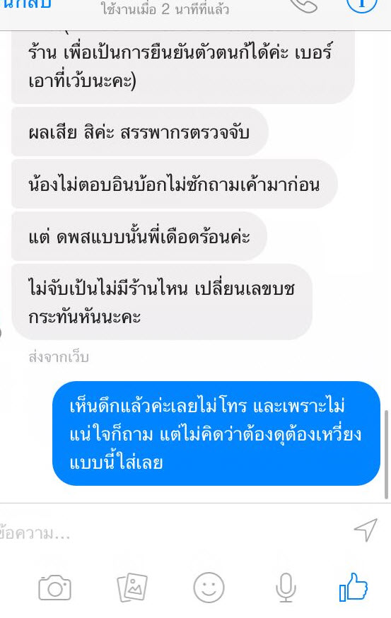 หนูก็กลัว เลยไปดูหน้าเพจว่ามีแจ้งไหมไม่เห็นมี และตอนนี้ดึกแล้วกลัวโทรเบอร์ร้านจะรบกวน