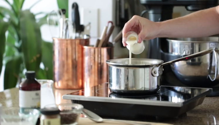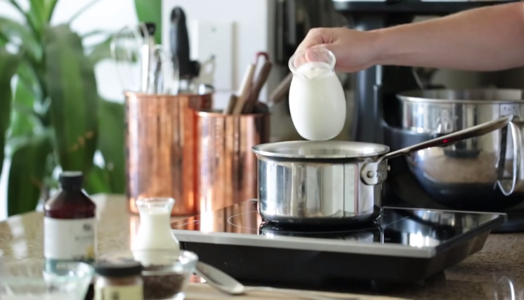 ตั้งหม้อตั้งไฟ แล้วเทนมก่อนเลยจ้า