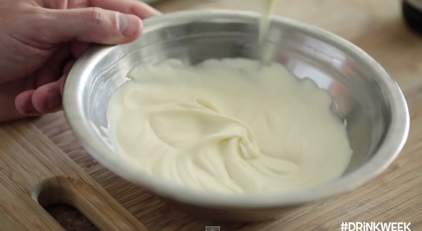พอครีมตั้งยอดแบบนี้ แปลว่าใช้ได้แล้วค่ะ พักไว้นตู้เย็น แล้วมาทำมิลค์เชคกันเลย~