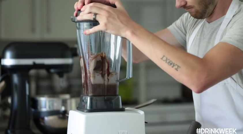 ตามด้วยโกโก้ที่ทำไว้ ปิดฝาแล้วเริ่มปั่นเลยจ้า