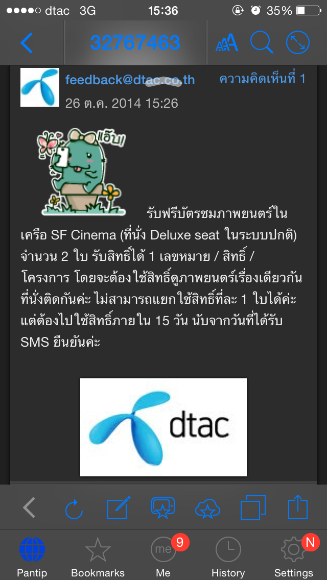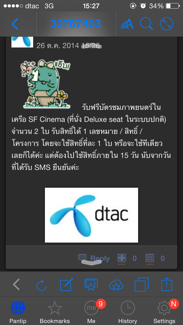 Dtac reward ดูหนังราคา90บาทของSF Cinema วันนี้สิทธิ์เต็มหรือยังคะ