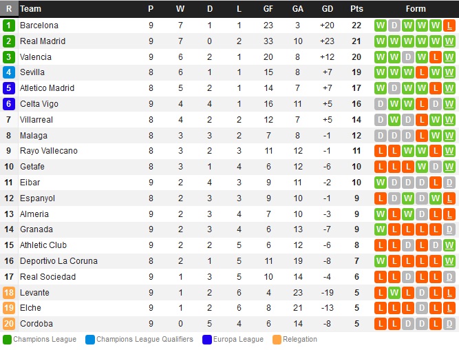 ตารางคะเเนนตอนนี้ เราจี้บาร์ซ่ามา ห่างเหลือเเค่ 1 เเต้มเเล้ว