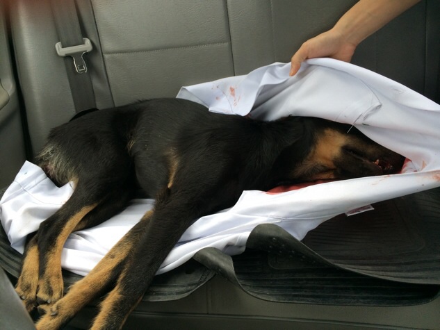 (ในภาพนี้คือได้พบคุณหมอ ล้างแผล ฉีดยาแก้ปวดแล้ว เตรียมย้ายรพ. นะคะ)