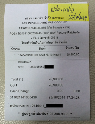 1) กล่องแรก ซื้อสีขาวจาก Samsung Brand Shop ฟอร์จูน พบว่า S-Pen ตอบสนองช้ามาก จึงนำกลับไปเปลี่ยนที่ร้าน ร้านตรวจสอบพบว่ามีปัญหาจริง จึงเปลี่ยนเครื่องใหม่ให้