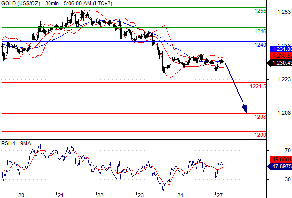 Our preference: Short positions below 1240 with targets @ 1221.5 & 1208 in extension.