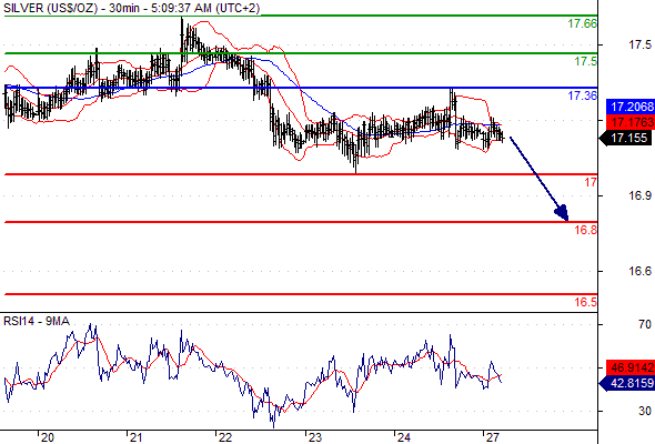 Comment: As long as the resistance at 17.36 is not surpassed, the risk of the break below 17 remains high.