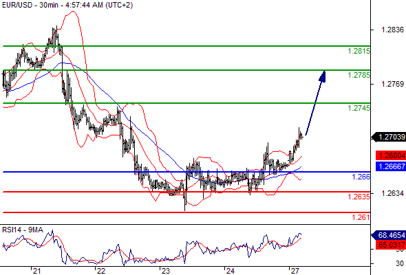 Our preference: Long positions above 1.266 with targets @ 1.2745 & 1.2785 in extension.