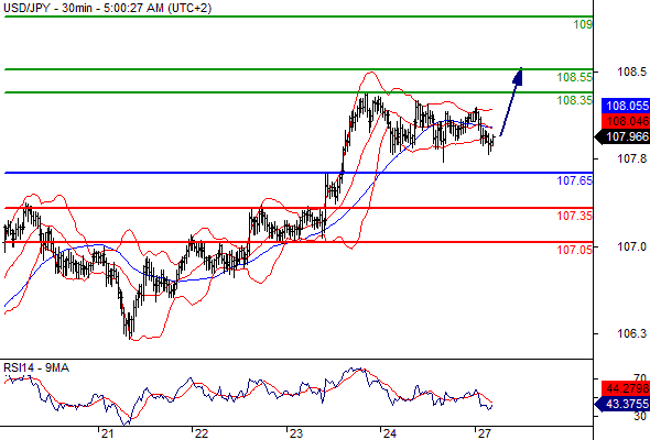 Our preference: Long positions above 107.65 with targets @ 108.35 & 108.55 in extension.