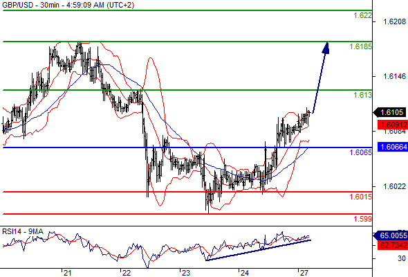Our preference: Long positions above 1.6065 with targets @ 1.613 & 1.6185 in extension.