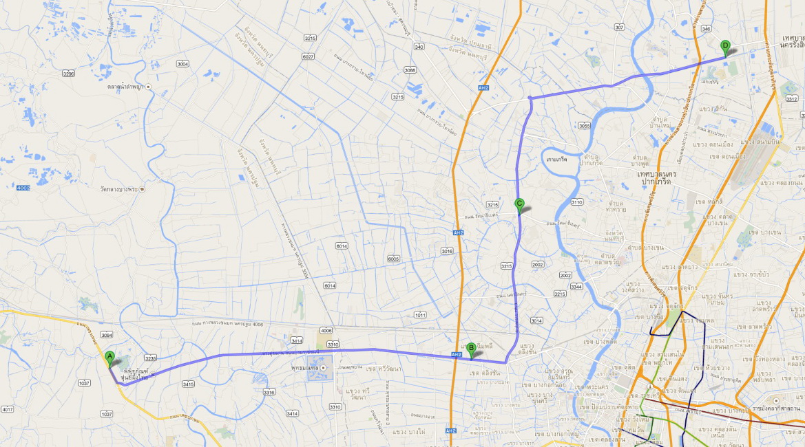ออกจากโลตัส ไปจนผ่านด่านชั่ง---ซ้ายตามป้าย"กรุงเทพมหานคร"----ถนนบรมราชชนนีขาเข้า