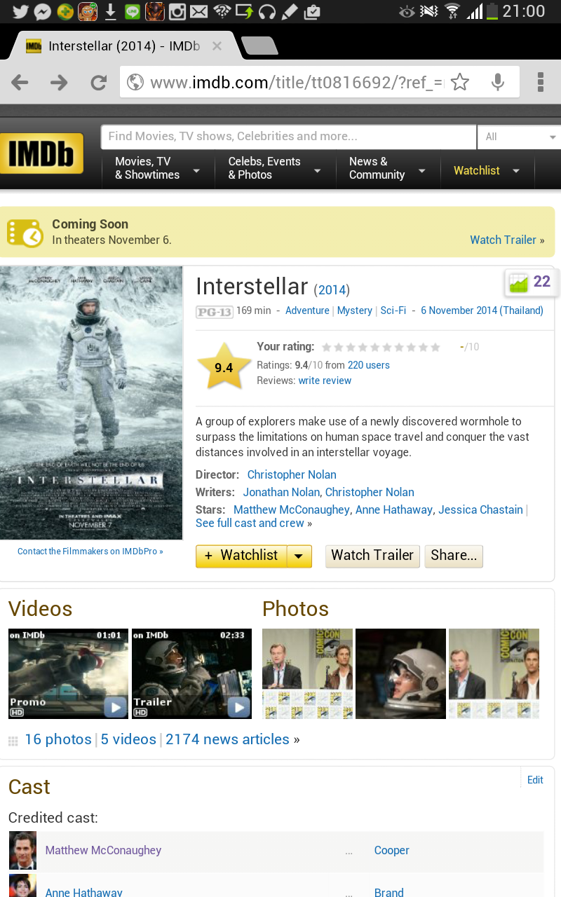 กรี๊ดดดดด คะแนนสตาร์ท IMDB Interstellar ออกมาแล้ววว