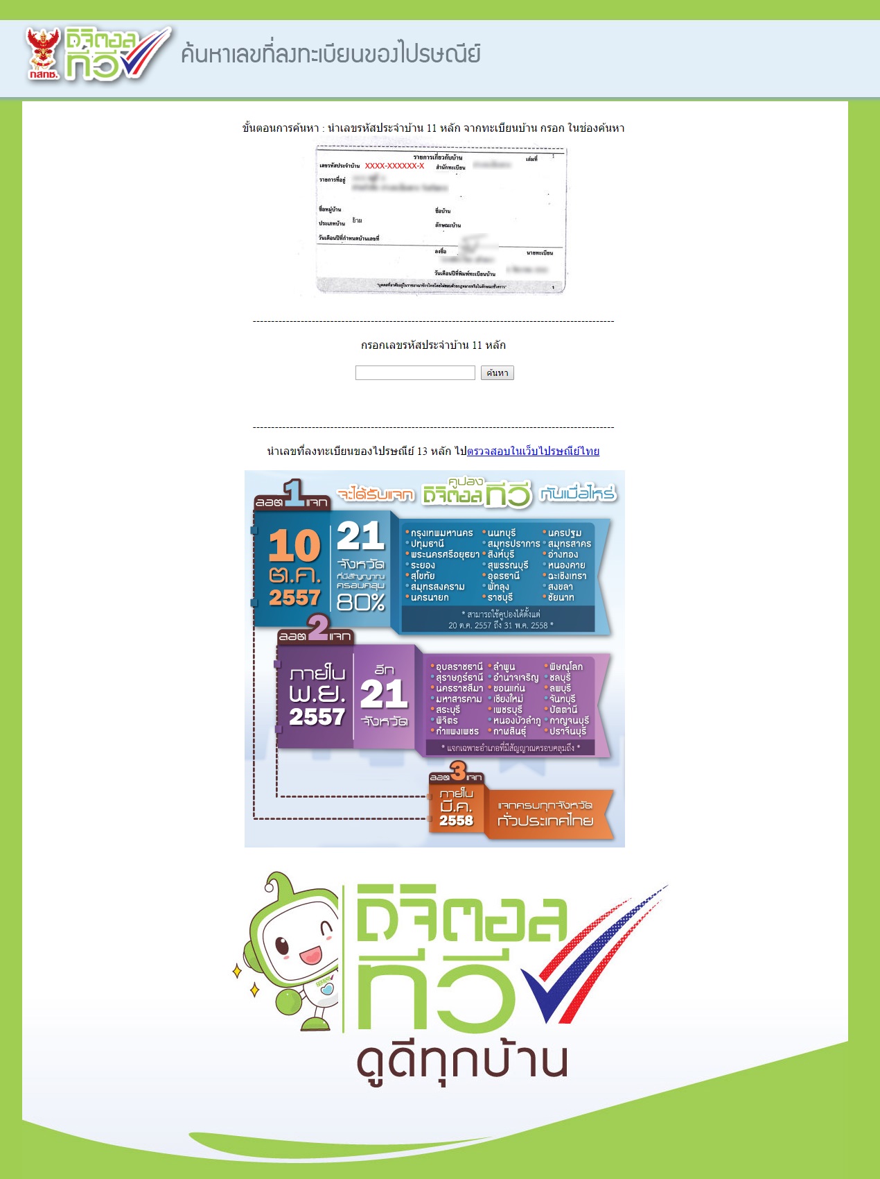 เว็บไซต์เช็คสถานะ คูปองแลกกล่องทีวีดิจิตอล สะดวกกว่าโทรเข้า Call Center ครับ