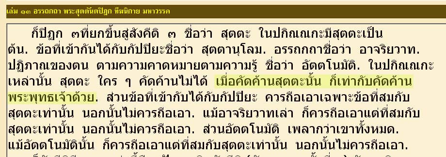 "สุตตะ ใครๆ คัดค้านไม่ได้ เมื่อคัดค้านสุตตะนั้น ก็เท่ากับคัดค้านพระพุทธเจ้าด้วย"