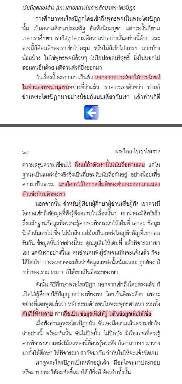 ตอบว่า สำหรับผมแล้ว การอ้างอิงคำชั้นสาวก ถือเป็นการอำนวยความสะดวกให้แก่ "ผู้อ่าน" โดยไม่ต้องผ่าน "ปาก" ของผม