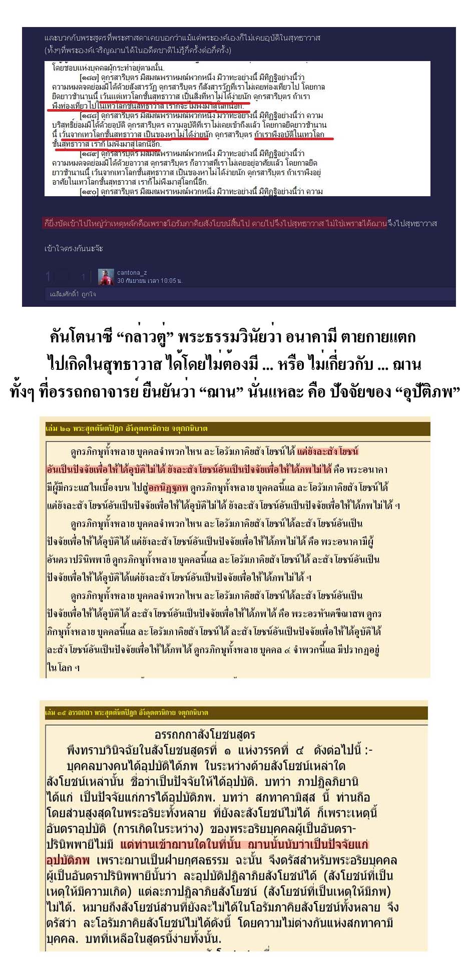 มันก็อยู่ตรงที่ว่า ในขณะที่ อัตตโนมัติของมัน ที่อ้างว่า อนาคามี ตายไปเกิดในสุทธาวาส ได้โดยไม่ต้องมีฌานนั้น ไม่มีหลักฐานใดๆ รองรับ