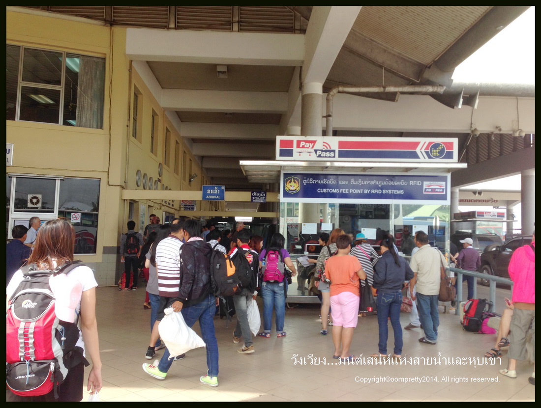 เราแบบเอาไงดีๆ เลยถามเค้าว่ามีรถอื่นไหม พอดีคนข้างหลังเราจะไปเหมือนกัน เลยตัดสินใจนั่งรถตู้ไปหนองคาย แล้วเดี๋ยวไปหารถต่อที่เวียงจันทร์กัน ในบขส. ข้างๆจะมีคิวรถตู้ค่ะ ราคา 50 บาท นั่ง ประมาณ 1 ชม.ก็จะถึงด่าน คนแอบเยอะ ต่อคิวแสตมป์บัตรขาเข้า ขาออกเหมือนเราบินไปต่างประเทศ ผ่านด่านก็จะเสียค่ารถอีก 20 เพื่อนั่งข้ามสะพานมิตรภาพไปยังฝั่งลาว