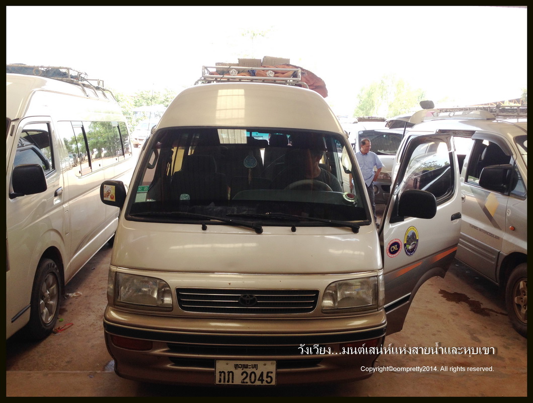 ผ่านด่านมา มีคนมา offer รถตู้ไปเวียงจันทร์บอกว่าจะไปส่งที่สายเหนือเลยจากด่าน 53 กม. เพราะตอนนี้รถไปวังเวียงที่ตลาดเช้าไม่มีแล้ว เรากับเพื่อนที่ตกลงร่วมใจตอนอยู่ บขส.อุดรประมาณ 4 คน ต่อๆต่อมาได้คนละ 150 บาท ก็โอเค นั่งมาถึงสายเหนือ ได้รถตู้มาคนละ 50000 กีบ - 200 บ. ไปลงวังเวียงเลยจ้า 3ชม. รถออกเที่ยงตรง