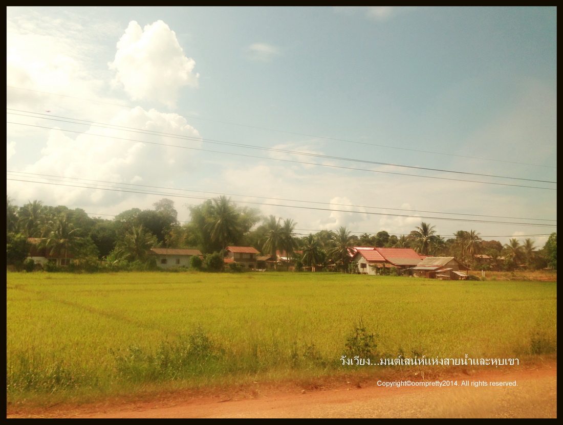ระหว่างทางก็แอบดูวิวสวยๆ ทุ่งนาบ้าง ฝนตกบ้าง วิถึชีวิตชาวบ้านบ้าง ถนนหนหางก็นะ ตึกตักๆ ตกหลุม ตกบ่อ กันพอประมาณเลยทีเดียว รบกวนคนที่เมารถเตรียมยาไว้ด้วยก็ดี เพราะผ่านเขาคดเคี้ยวมาก จขกท.ยังจิแอบเป็นลมนิดๆ