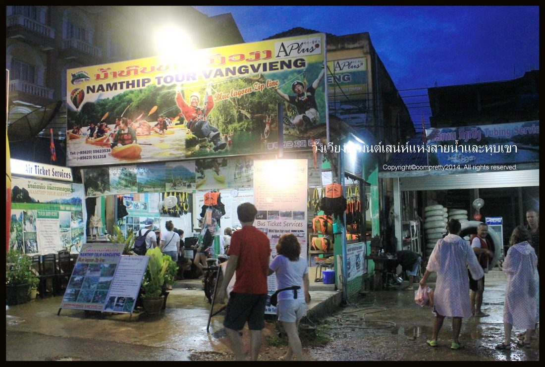 เมื่อหนังท้องตึง เรามาเดินย่อยกันในตัวเมือง นี่คือร้านที่เวลาไปทัวร์คายัค ล่องห่วงยาง จขกท.ซื้อมา 360 บาทสำหรับทัวร์ 1วัน มีล่องห่วงยางไปในถ้ำ อาหารกลางวัน แล้วก็พายเรือคายัค ที่นี่บริการทัวร์เยอะมาก จขกท.เลือกร้านเล็กๆในลืบๆ ราคาจะถูกกว่า