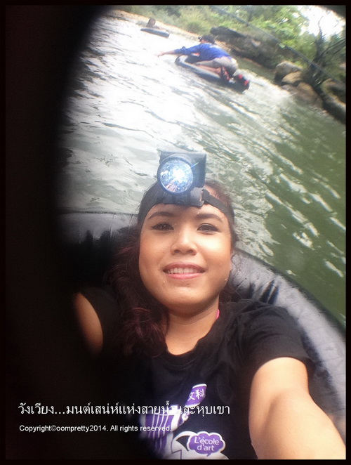 จขกท.ขอตัวล่องห่วงยางไปในถ้ำก่อนน้า เป็นอะไรที่เมื่อยแขนมาก เพราะเราจะต้องเกาะเชือกตามๆกันไป แต่สนุกดีค่ะมีไฟฉายให้ใส่หัว 1 อัน เพราะข้างในมืด น้ำเย็นมาก