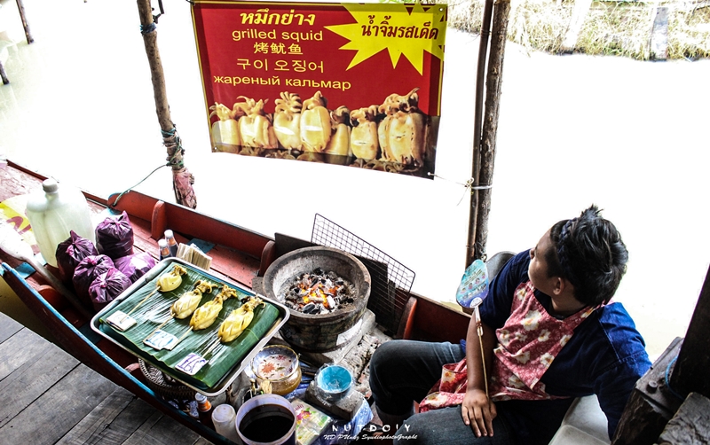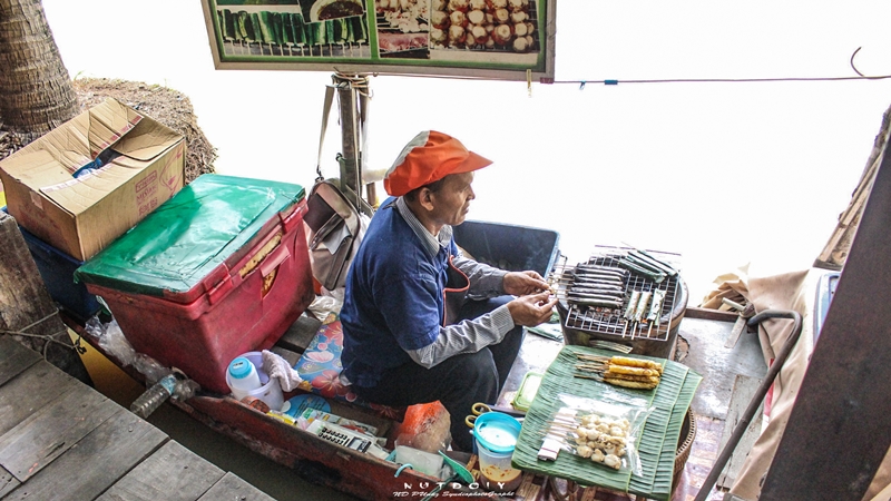 ส่วนอาหารการกินที่นี่ส่วนมากจะขายกันในเรือพายรำเล็กๆไม่ใหญ่มาก เหมือนเป็นซิกเนเจอร์