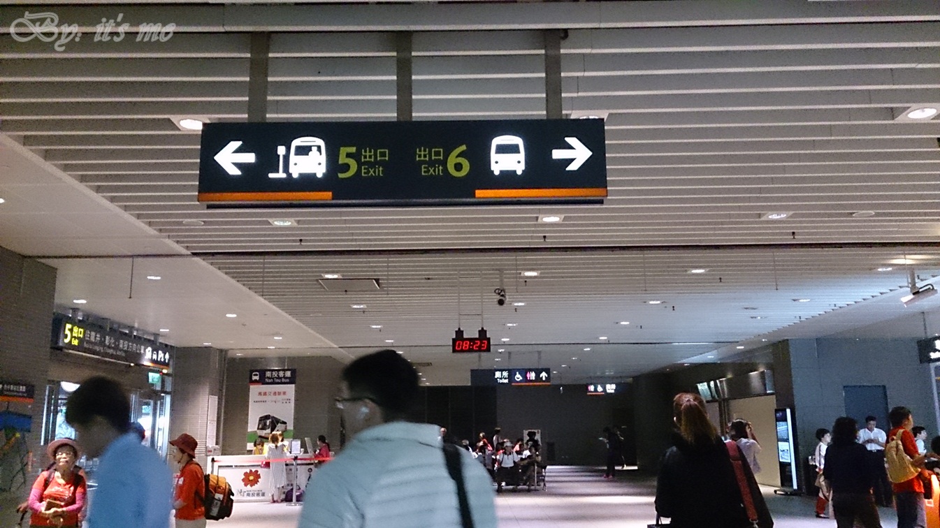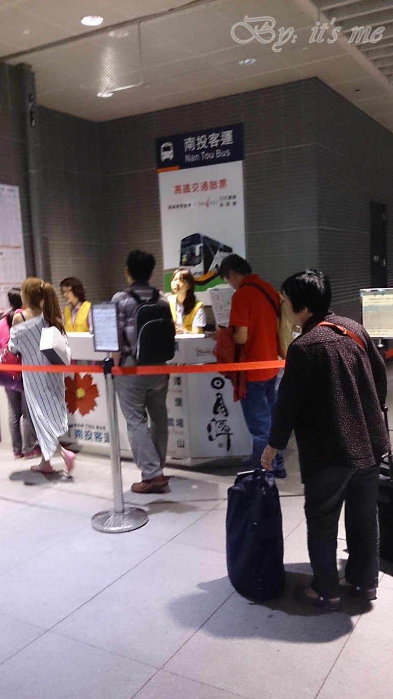 พอลงไปถึงชั้นล่าง จะมีทางแยกซ้ายขวาระหว่างทางออก 5 กับทางออก 6 ให้ไปที่ทางออก5 นะคะ ที่ป้ายตรงประตูทางออกจะมีบอกอยู่ว่าไป Sun moon lake (日月潭 = รื่อ เย่ว ถาน) บริเวณหน้าทางออกประตู 5 จะเห็นว่ามีเคาท์เตอร์สีขาวๆตั้งอยู่ เคาท์เตอร์เป็นของบริษัท Nantou ค่ะ ที่นี่เค้าจะมี sun moon lake pass ขายด้วย เราสามารถเลือกได้หลายแพ็คเกตแล้วแต่เราว่าอยากได้อะไรบ้าง ราคาก็จะสูงต่ำแตกต่างกันไป เจ้าหน้าที่ที่นี่ค่อนข้างพูดอังบกฤษได้ดีพอสมควรเลยค่ะ สงสัยอะไรสอบถามเค้าได้เลย