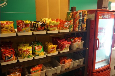 ตรงข้ามกับเคาเตอร์จะมีบริหารน้ำและขนมไว้ให้กับลูกค้า โดยหยิบและนำไปจ่ายเงินเลย