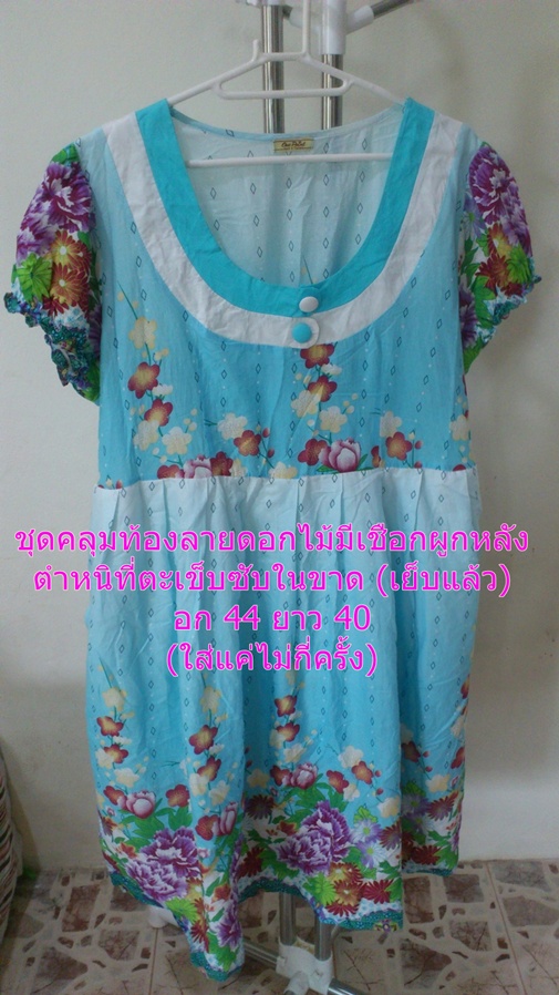 3.ชุดคลุมท้องลายดอกไม้ ใส่นับครั้งได้ แต่มีตำหนิตรงซับในตะเข็บขาด แต่เย็บแล้วค่ะ