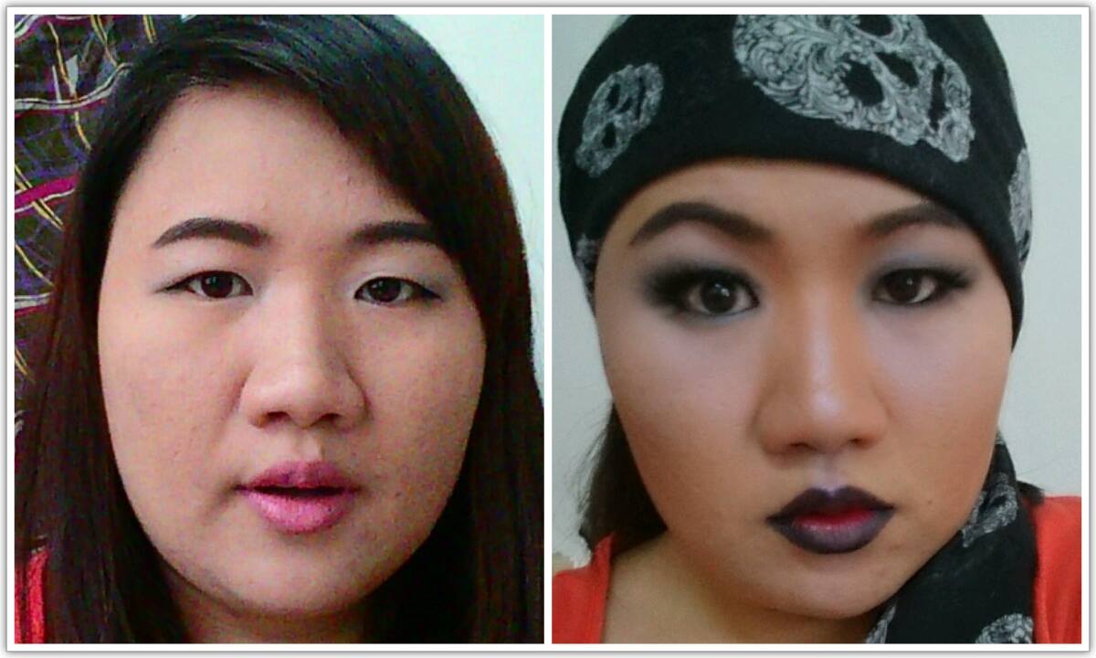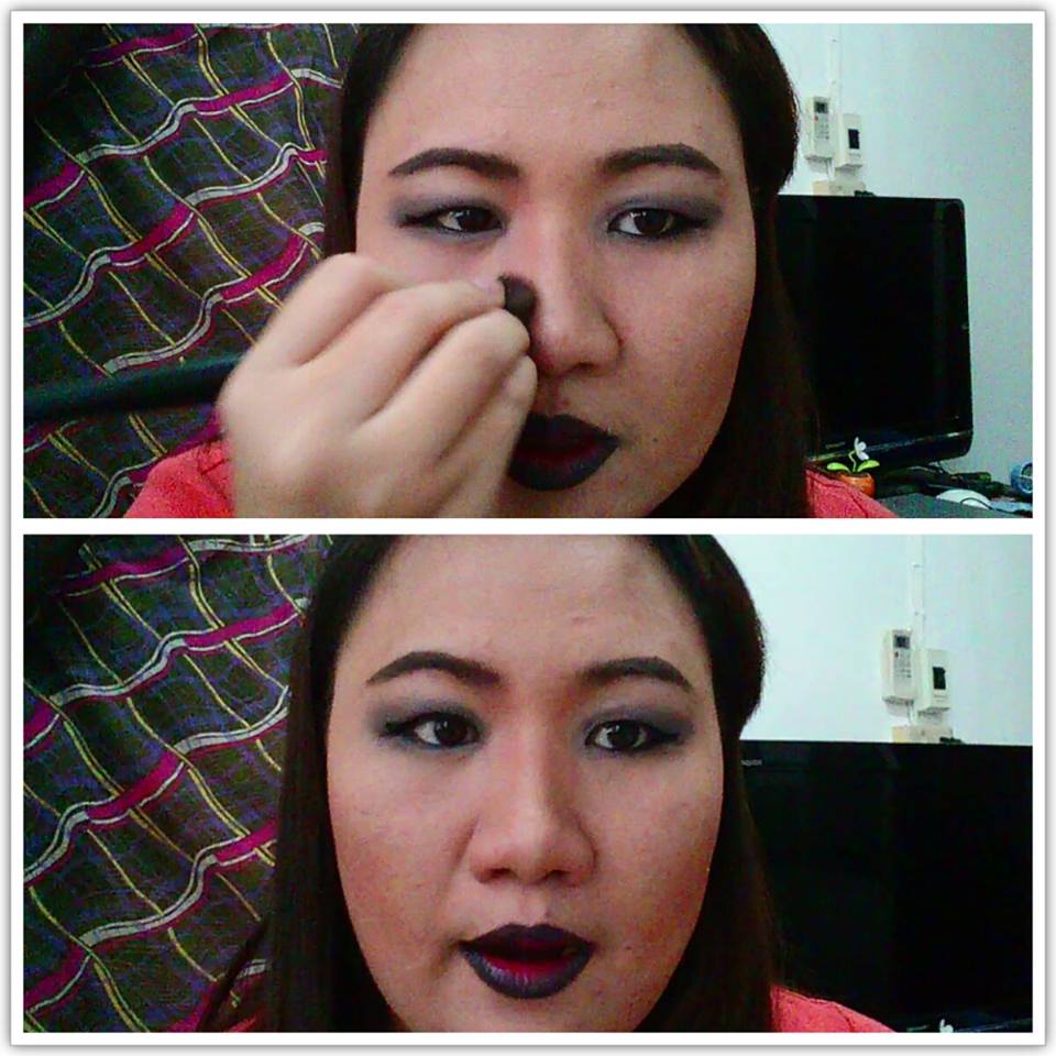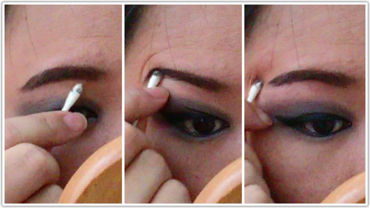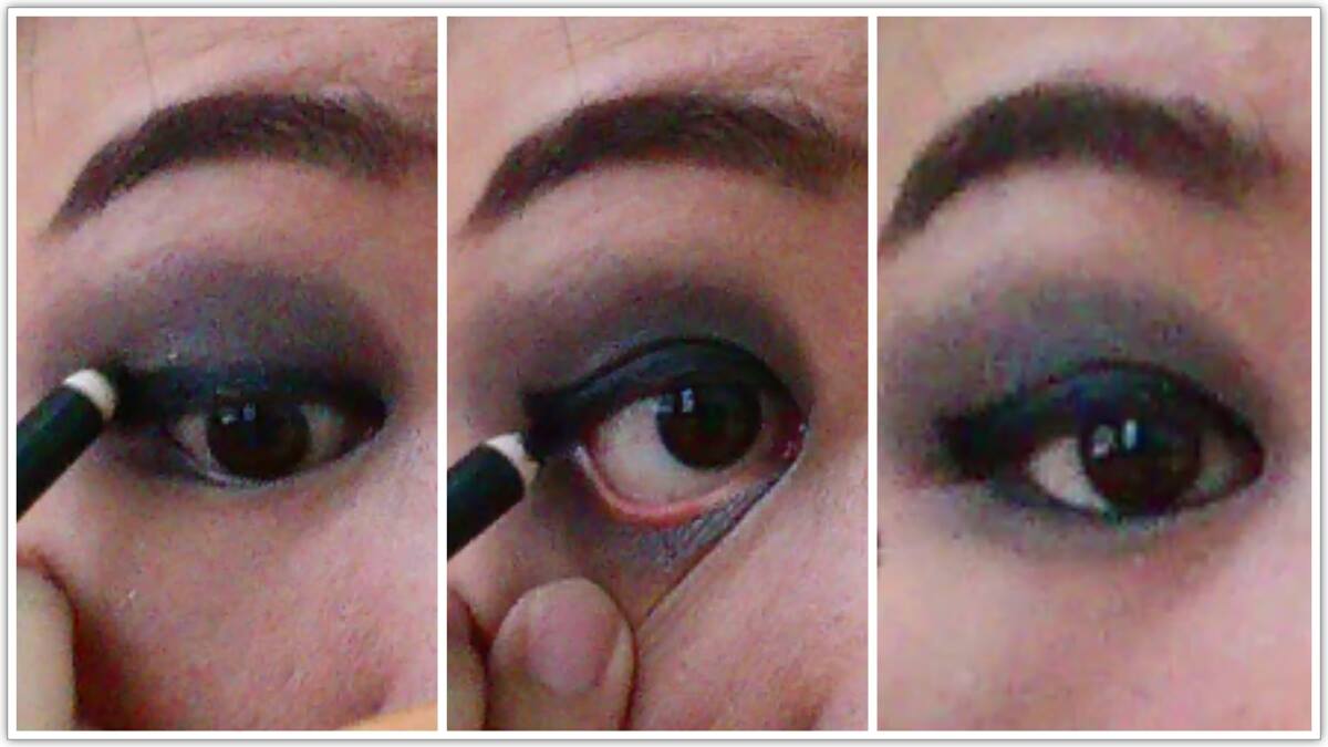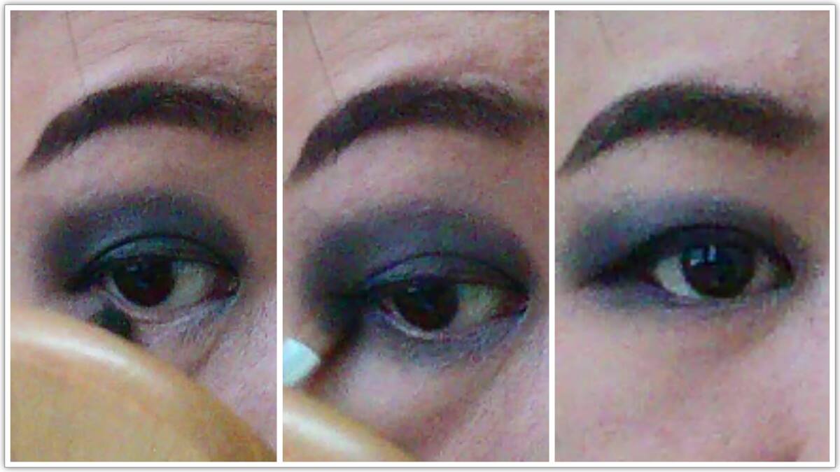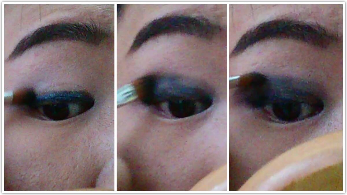 เริ่มจากเติม eye shadow สีดำลงไปบนตาทั้ง 2 ข้าง โดยลงในลักษณะ smoky eye ตามภาพนะคะ
