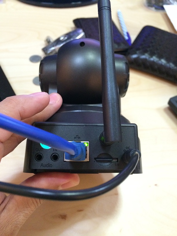 3 เสียบสาย LAN กับสายหม้อแปลง ขันเสาให้เรียบร้อยครับ แล้วเสียบปลั๊กเลยครับ รอกล้องหมุนไปหมุนมา จนหยุดและ LED กระพริบ (ประมาณ 30 วิ)