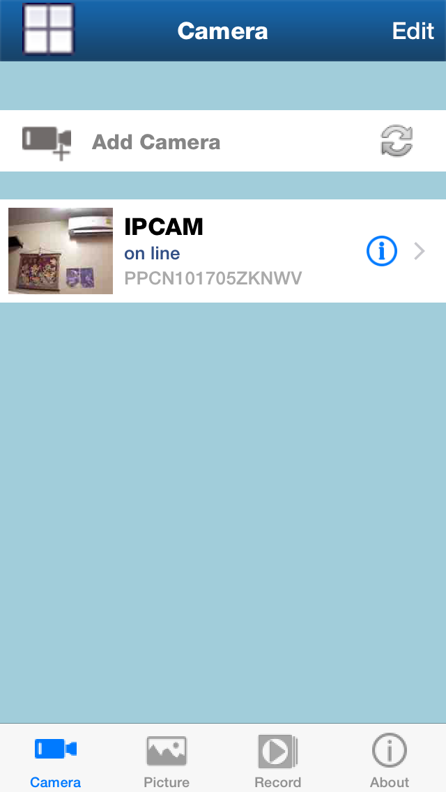 5 ติดตั้งแอพลงในมือถือเราคับ ชื่อแอพคือ p2pwificam2 มือถือของผมเป็น iPhone ครับ เปิดแอพมาจะขึ้นหน้าจอแบบนี้