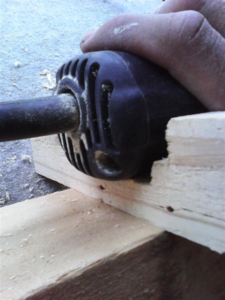 ได้แล้วก็มาเจาะตรงกลาง (จากรอยวงเวียน) ด้วยสว่านราคา 1600 มือหนึ่งเทียม อึดอีก
