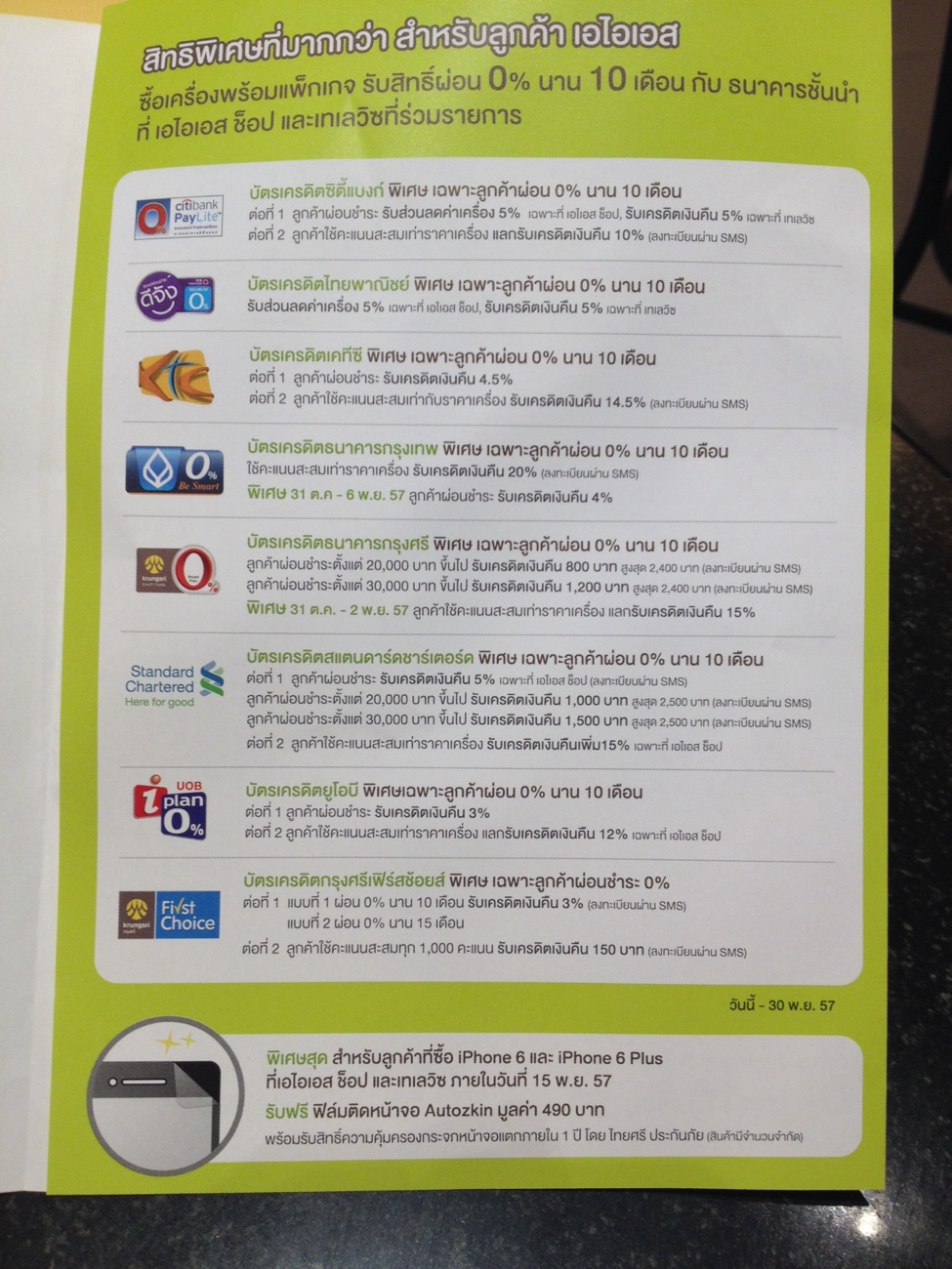 พอดีอยากทราบว่าจะผ่อน Iphone 5s ผ่านบัตรเครดิตที่ร่วมรายการ (ผ่อน 0% อ่ะค่ะ) สามารถผ่อน 0% ได้ถึงช่วงไหนอ่ะค่ะ หมดเขตเมื่อไหร่ หรือผ่อน 0% ได้ตลอด แล้วมีเงื่อนไขยังไงบ้างอ่ะคะ #ขอบคุณค่ะ^^