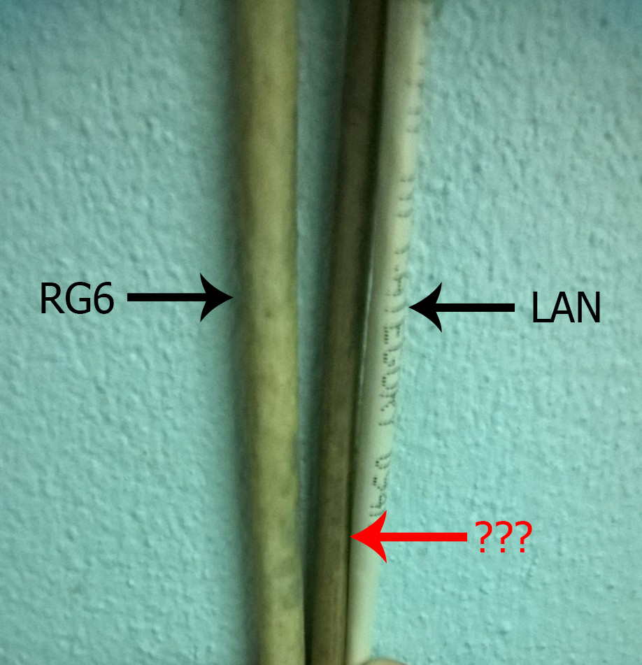 สายซ้ายสุดคือสาย RG6(ต่อดูกล่องดาวเทียมอยู่) สายขวาสุดคือสายแลน(เคยใช้ดูกล่องฝัน) สายตรงกลางคือสายที่เป็นคำถามของกระทู้นี้ครับ มันจะเล็กกว่า RG6พอสมควร ขนาดใกล้เคียงกับสายแลน