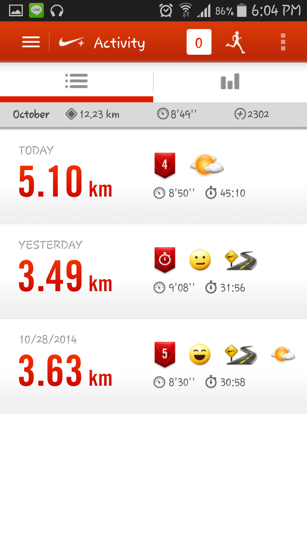 ที่ผ่านมาซ้อม 4 วัน หยุด 1 วัน เข้าสัปดาห์ที่ 4 แต่ซ้อมแบบไม่มีแบบแผนเลยค่ะ พยายามวิ่งให้นานขึ้น ได้ระยะทางมากขึ้น แต่คงความเร็วไว้เท่าเดิม อยู่ที่ pace 8-9 เองค่ะ (เพิ่งพกมือถือวิ่งมา3 วัน) ตอนนี้ได้ระยะทาง 5 km. ยังรู้สึกว่าวิ่งได้อีกนะคะ แต่ฟ้าเริ่มมืดก้จะหยุดก่อนค่ะ พยายามไปซ้อมให้ไวขึ้น จะได้วิ่งนานขึ้นอีกหน่อย