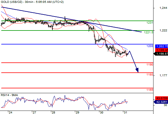 Gold spot Intraday: key resistance at 1208.