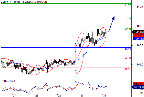 Our preference: Long positions above 108.7 with targets @ 109.55 & 110 in extension.