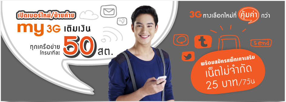 โปรเติมเงินของ my โทรนาทีละ 50 สตางค์ เน็ตไม่จำกัด 25บาท/สับดาห์