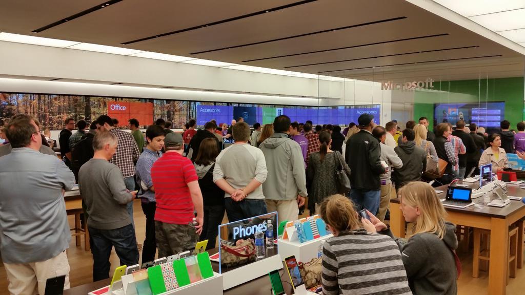 ภาพคนต่อแถวซื้อ Microsoft Band สายรัดข้อมืออัจฉริยะจาก Microsoft (ที่มา - Eric Neustadter (e))