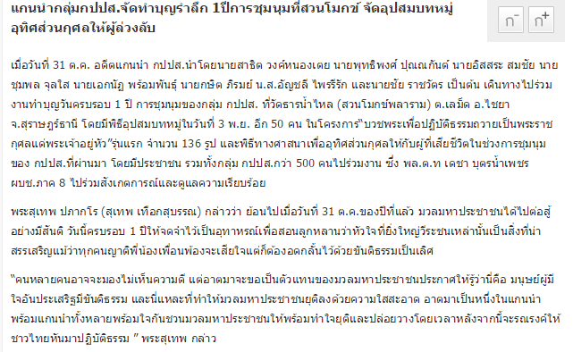 กกปส.จัดอุปสมบทหมู่รำลึก1ปีการชุมนุม 31 ตุลาคม 2557 เวลา 16:21 น.+ แกนนำกลุ่มกปปส.จัดทำบุญรำลึก 1ปีการชุมนุมที่สวนโมกข์....... อ่านต่อได้ที่ :