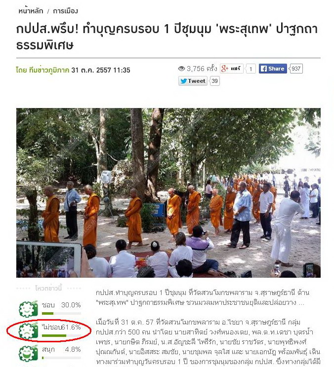 กปปส.ทำบุญครบรอบ 1 ปีชุมนุม ที่วัดสวนโมกขพลาราม จ.สุราษฎร์ธานี ด้าน "พระสุเทพ" ปาฐกถาธรรมพิเศษ ชวนมวลมหาประชาชนยุติและปล่อยวาง ...
