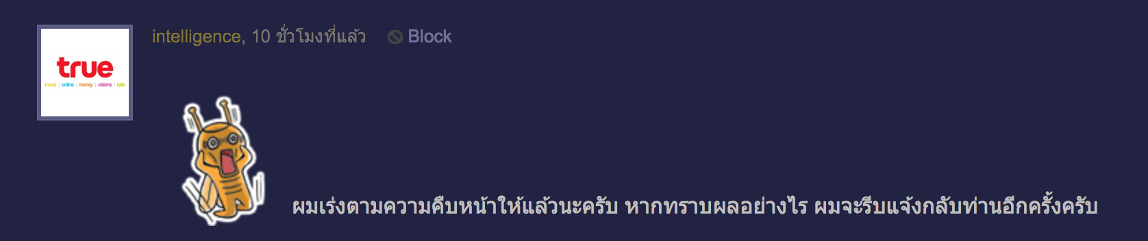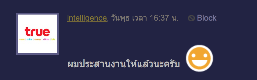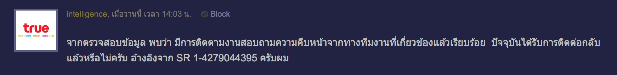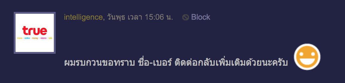 รู้สึกปลื้มใจแบบสุดๆๆ ผมเคยใช้ของ ทีโอที นะครับ บอกตามตรงว่าเรื่องของคุณภาพของพนักงานแตกต่างกันราว ฟ้า กับ หุบเหว ของทีโอที แค่บ่นในเฟสบุค พนักงานถึงกับต้องโทรมาหา และเข้ามาหาถึงบ้าน ไม่ต้องยกโทรศัพท์เลยด้วยซ้ำ