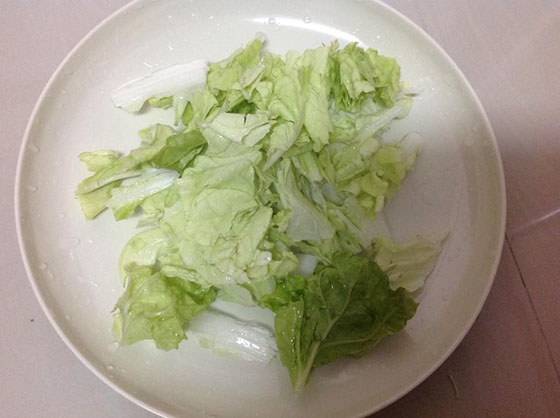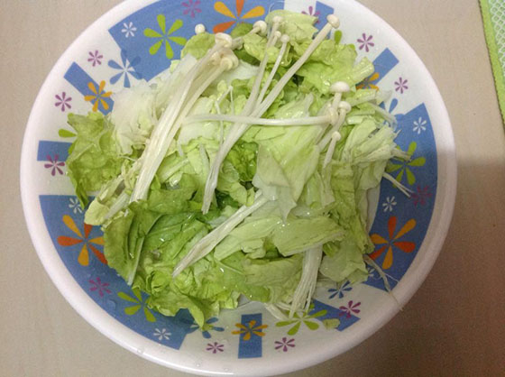 *อาจจะใส่ผักชนิดอื่นเพิ่มก็ได้นะคะ แต่คือเราไม่มีมีด บอกแล้วว่าเด็กหอจริงๆ 555 เราเลยเอาผักที่สามารถเด็ดได้ด้วยมือ*
