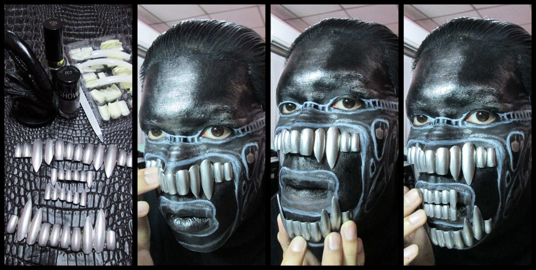 (ไม่เหนื่อยดี555) แต่ส่วนที่เป็นพระเอกของลุคคือ ฟันที่ทำจากเล็บ