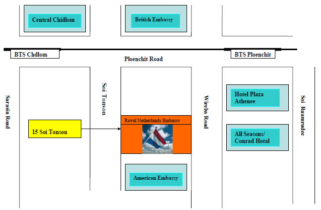 สถานทูตเนเธอร์แลนด์ เข้าทางถนนวิทยุหรือซอยต้นสน