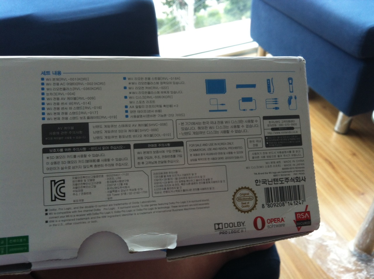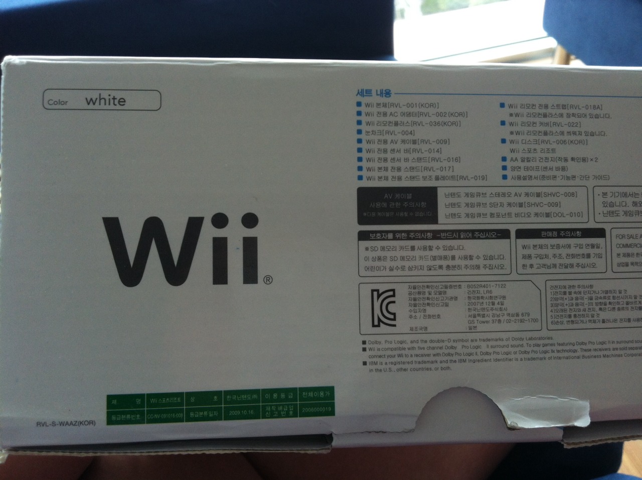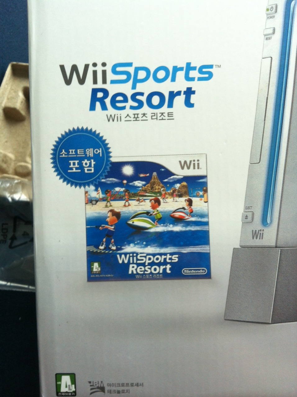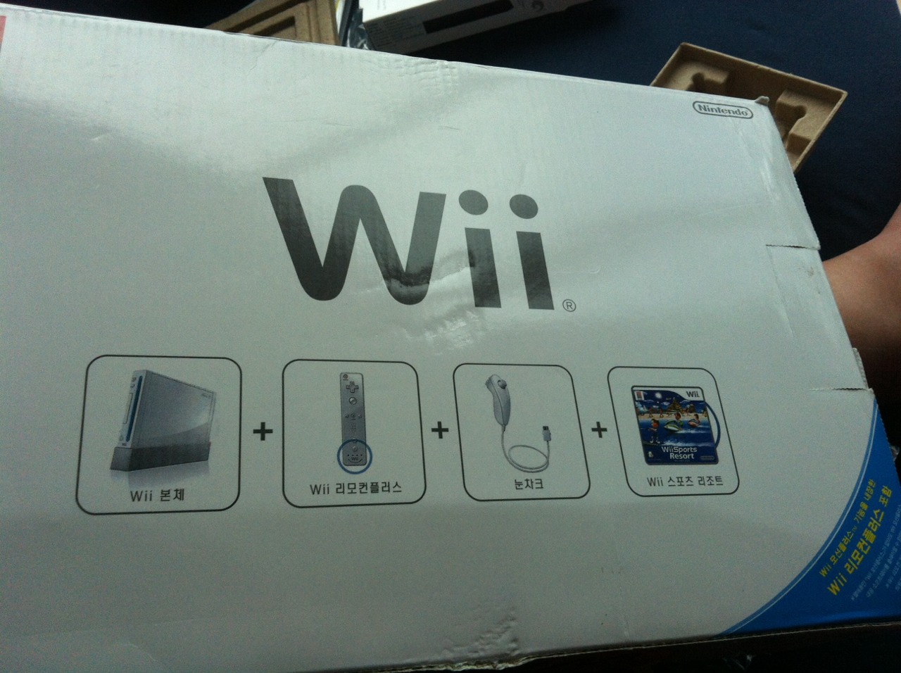 เราเห็นใกล้บ้านเลยไม่ได้คิดอะไร ดูในเว็บก็น่าเชื่อถือ มีดารา นักแสดงไปซื้อกัน เลยเข้าไปซื้อบ้างแต่พอเอากลับบ้านมาดูอีกทีเหมือนกล่องโดนแกะออกมาแล้ว รื้อๆใส่เก็บไม่เรียบร้อยหลายอันมาก (ไม่น่าใช่ตอนลองเครื่อง) เพราะเราไม่เห็นมีถ่านสองก้อนแถมมาเหมือนกล่องของที่ขายอเมริกาเลยค่ะ(ไม่ทราบว่าเวอร์ชั่นเกาหลีจะเหมือนกันไหม) เรานั่งดูรีวิว Unboxing เมื่อกี้ + แถมหน้ากล่องบอกว่าแถมเกมส์ Wii sport Resort มาให้ด้วยแต่เปิดกล่องไม่เจอค่ะ ไม่มีแผ่นไม่มีอะไรเลย ??ภายในกล่องตรงสีฟ้าๆ ถาดใส่ของก็บุบๆ พอเราจะเช็คของไปชะเง้อดูแปปๆ เหมือนเค้ารีบๆ ใส่กล่องใส่ถุงให้เราเลย