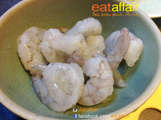 เตรียมกุ้งสด แกะเปลือกให้เรียบร้อย