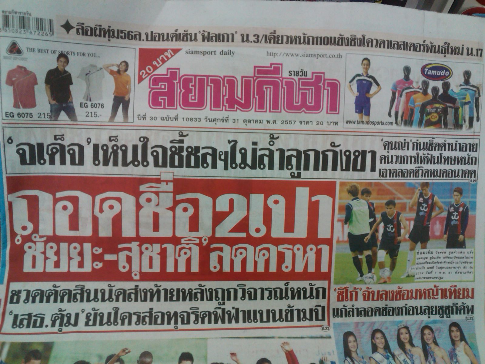 ดูพาดหัวสยามกีฬาเมื่อวานแล้วฮาเลยครับ !! เปาเป่าล้ำหน้าพลาดนัดชลบุรีถึงขั้นกดดันให้แบนตลอดชีวิต 555++